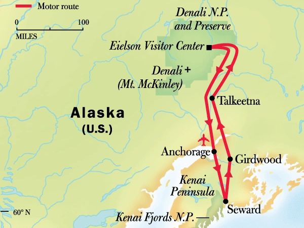 Denali Immersive Presentation and Hike, Denali National Park and Preserve. Arrival transfer. Alaska SeaLife Center admission. Kenai Fjords National Park cruise. Mount Alyeska tram. Denali National Park transit bus to Eielson Visitor Center. All transport between destinations and to/from included activities. Flights, Hotels (8 nts), 8 breakfasts, 3 lunches, 1 dinner